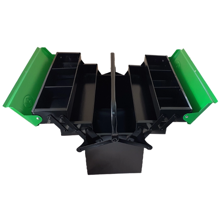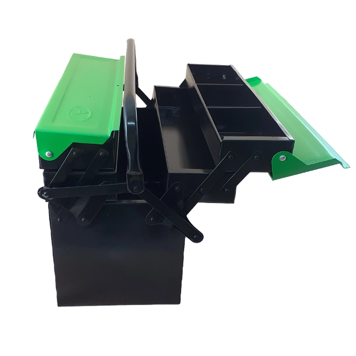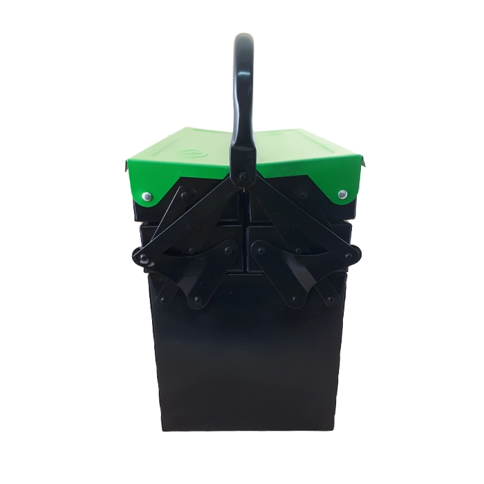 این جعبه ابزار با ابعاد 31*20*40 سانتیمتر و طراحی سه طبقه مجزا، فضای کافی برای قرار دادن انواع ابزارآلات کوچک و بزرگ را فراهم میکند. وجود 9 محفظه مختلف، کمک میکند تا ابزارهایتان را به شکلی منظم و بدون درهمریختگی نگهداری کنید. بدنه فلزی و مقاوم این محصول، تضمینکننده طول عمر بالا و محافظت ابزارها در برابر ضربه و فشار است. همچنین دستگیره قوی و خوشدست آن، حمل جعبه را بسیار راحت میکند.