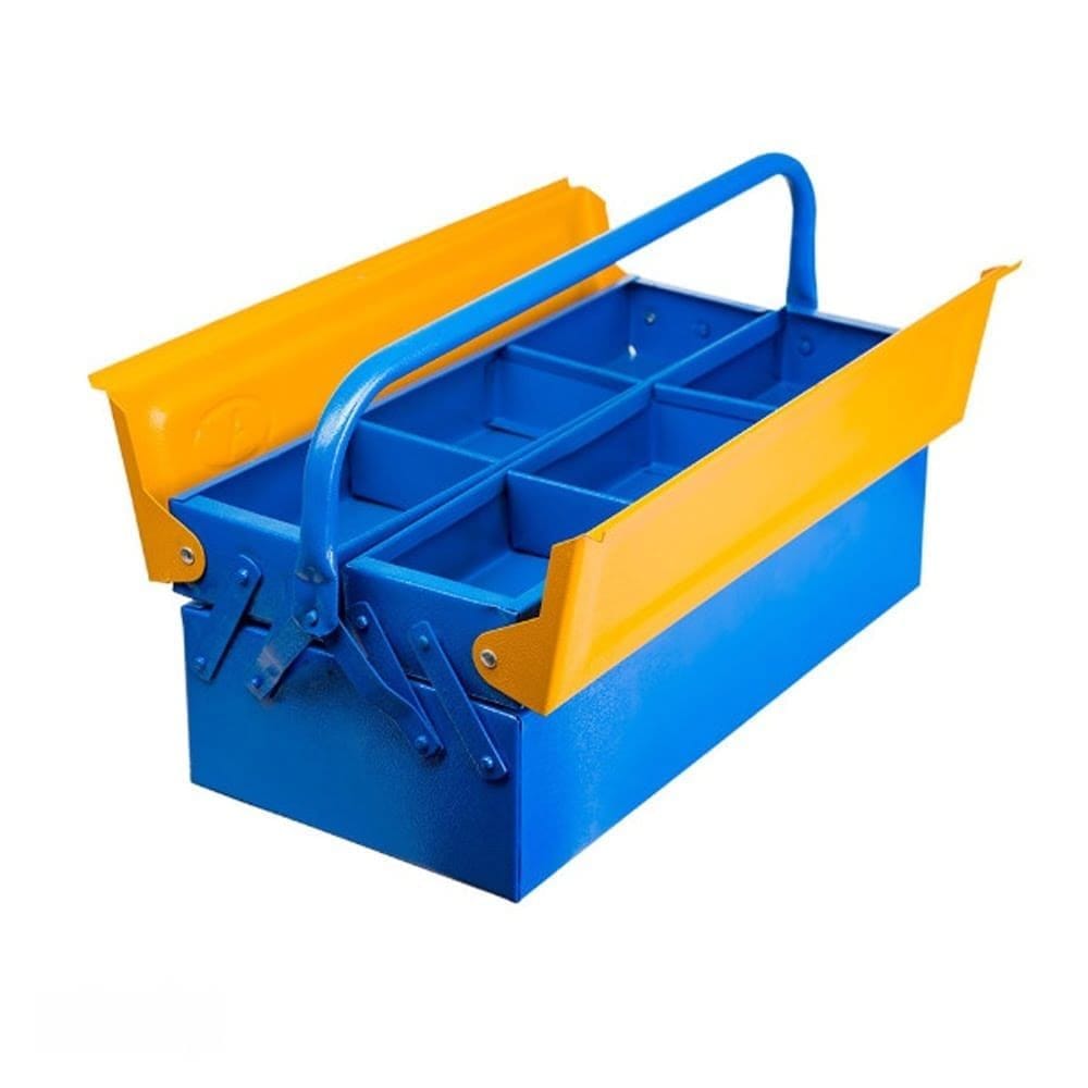 همچنین، این جعبه ابزار با ابعاد استاندارد 40 سانتی‌متر، به راحتی در صندوق عقب ماشین، قفسه کارگاه یا حتی گوشه انباری جای می‌گیرد و ابزارهای شما را سازماندهی می‌کند.