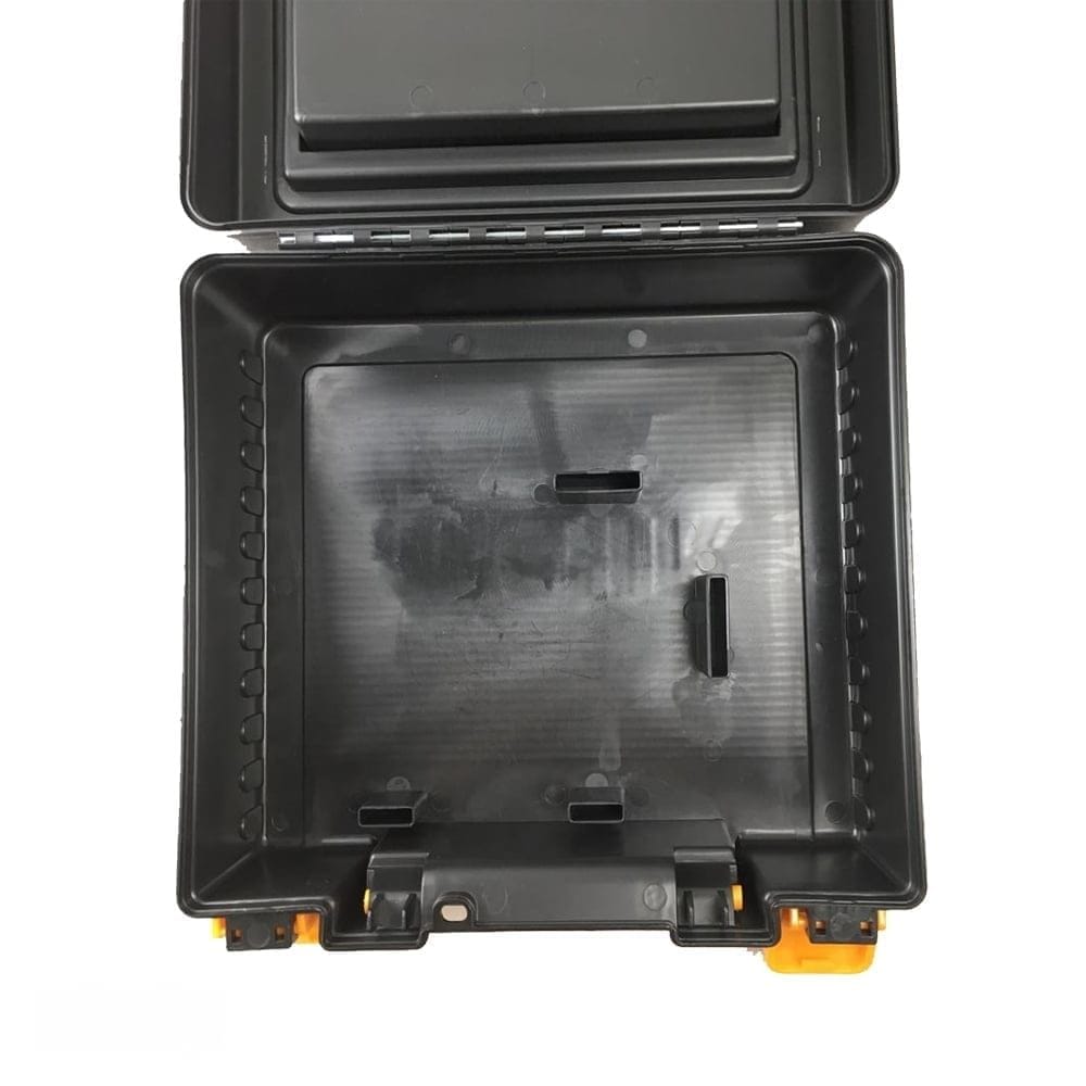 این جعبه ابزار با ابعاد استاندارد 140*320*320 میلیمتر فضای کافی برای نگهداری انواع دریل، مینی فرز و متعلقات مرتبط را فراهم میکند. بدنه جعبه از پلاستیک نشکن با کیفیت بالا ساخته شده که در برابر ضربه و فشار بسیار مقاوم است. قفل پلاستیکی بادوام آن امنیت ابزارها را تضمین میکند و از باز شدن ناخواسته درب جلوگیری مینماید. دسته مستحکم و سبک جعبه نیز حمل آسان و راحت را برای کاربر فراهم میکند.
