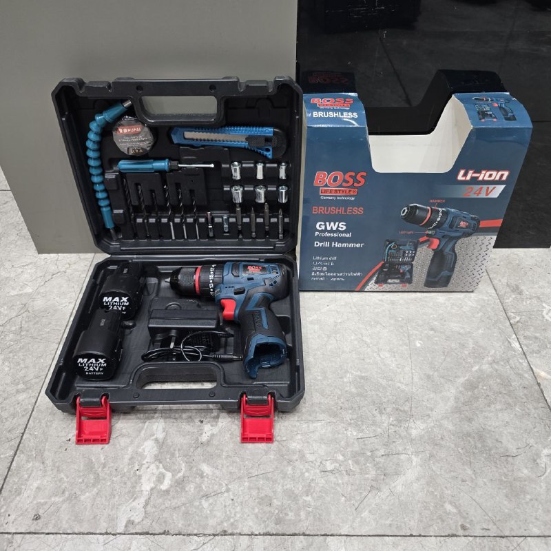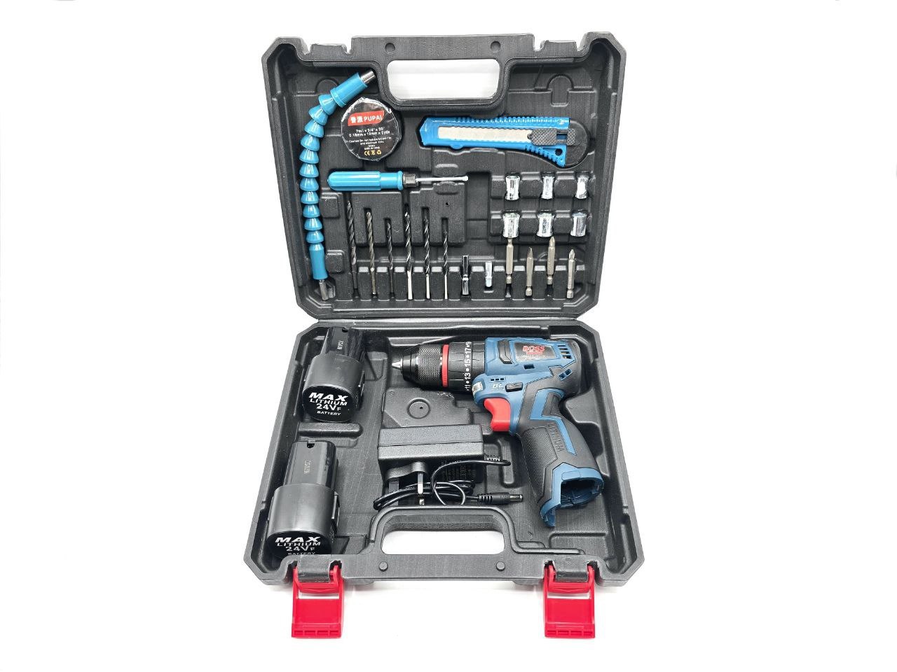 دریل شارژی ۲۴ ولت براشلس چکشی سه نظام فلزی باس مدل 310