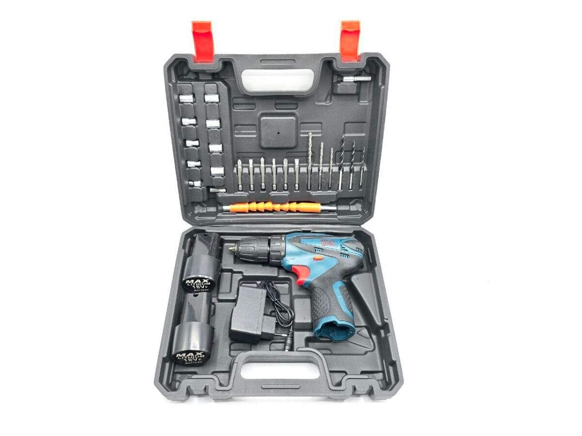• به همراه لوازم همراه؛ مته آهن( سایز ۴ و ۵ میلیمتر)، مته چوب( سایز ۴ و ۵ میلیمتر)، مته دیوار(سایز ۵ و ۶ میلیمتر)، رابط فنری تاشونده، دو عدد نوک پیچ گوشتی چهارسو، دو عدد نوک پیچ گوشتی دو سو، نوک پیچ گوشتی ستاره ای بکس(سایز ۵، ۶، ۷، ۸، ۹، ۱۰،  ۱۱، ۱۲ و ۱۳ میلیمتر)، تبدیل بکس خور سر دریلی سایز ۱/۴، مته شیشه سایز ۱۰