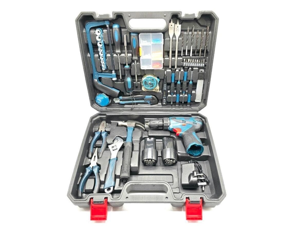 - دارای کلیه ابزارهای مصرفی شامل؛ آچار فرانسه سایز۸، انبردست، دمباریک، چکش، بکس تک سایز ۴ تا ۱۳، متر ۳ متری، پیچ گوشتی دوسو و چهارسو سایز بزرگ، پیچ گوشتی نوک خور، مته آهن سایز ۵ و ۶ و ۸، مته دیوار سایز ۵ ،۶ و ۸، مته برگی سایز ۱۲ و ۱۶، ۹ عدد نوک پیچ گوشتی، تبدیل نوک پیچ گوشتی به بکس چسب برق، کاتر، فازمتر دیجیتال، آچار سه نظام، ۵ عدد تیغ کاتر، دو سایز پیچ گوشتی موبایلی دو سو و دو سایز پیچ گوشتی موبایلی چهارسو، کمان اره چوب و فلز، مجموعه سایزبندی پیچ و رولپلاک