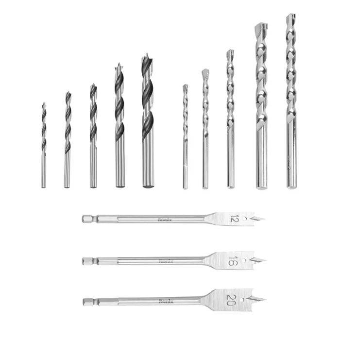 - همراه با کیف ضد ضربه، متههای مخصوص چوب، فلز و سنگ، سری پیچ گوشتی، پیچ و رولپلاک